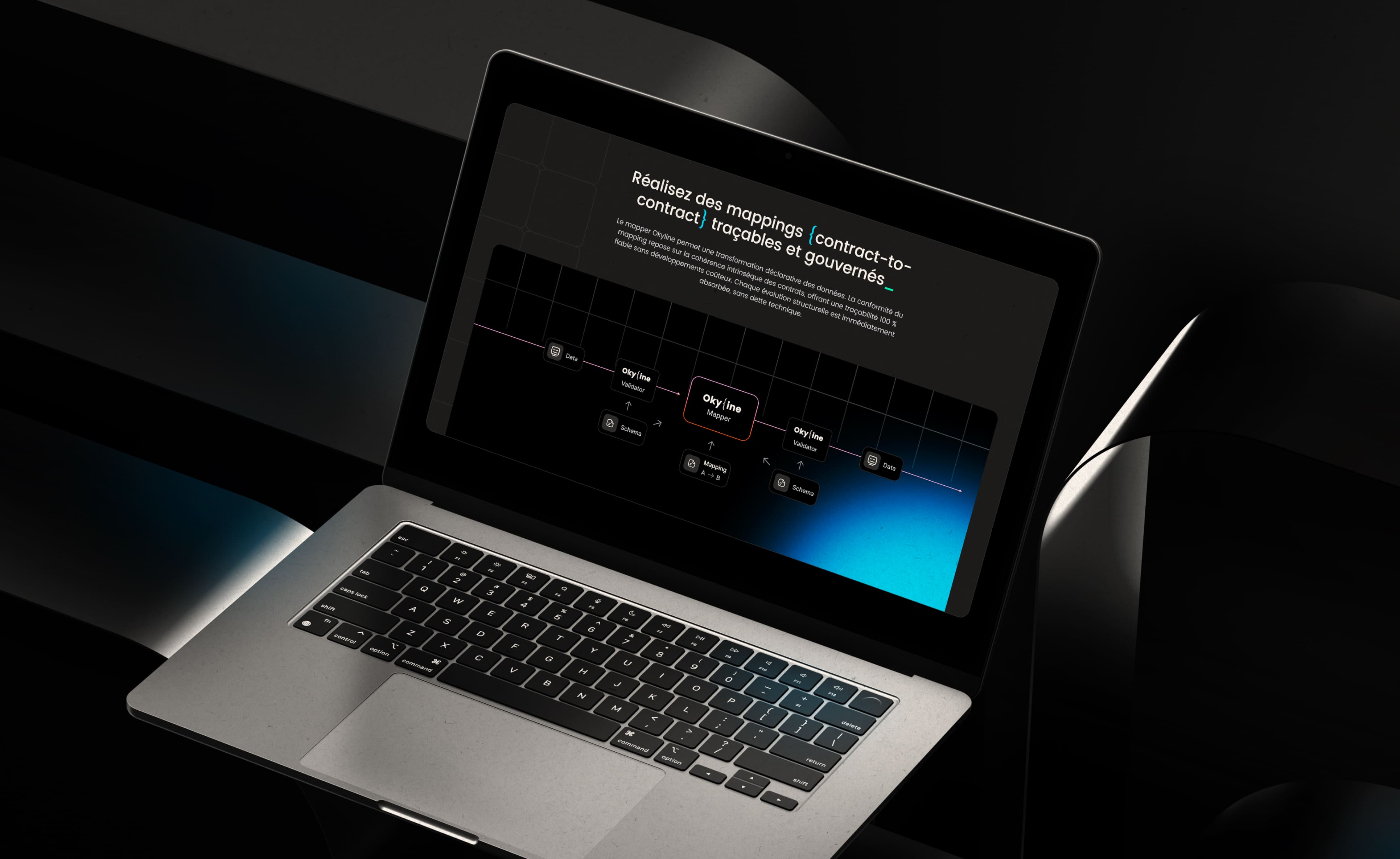 En trois mois, nous avons bâti une identité de marque complète, du logo au site web développé. Pour cela, nous avons pris le contre-pied des designs corporate en puisant notre inspiration dans l'esthétique même du code : une typographie forte, des jeux de couleurs syntaxiques et l'utilisation de symboles comme éléments graphiques. Soutenu par des illustrations qui vulgarisent les concepts clés, ce langage visuel unique transforme un sujet intimidant en un dialogue engageant et positionne Okiline comme un partenaire innovant et pédagogue.